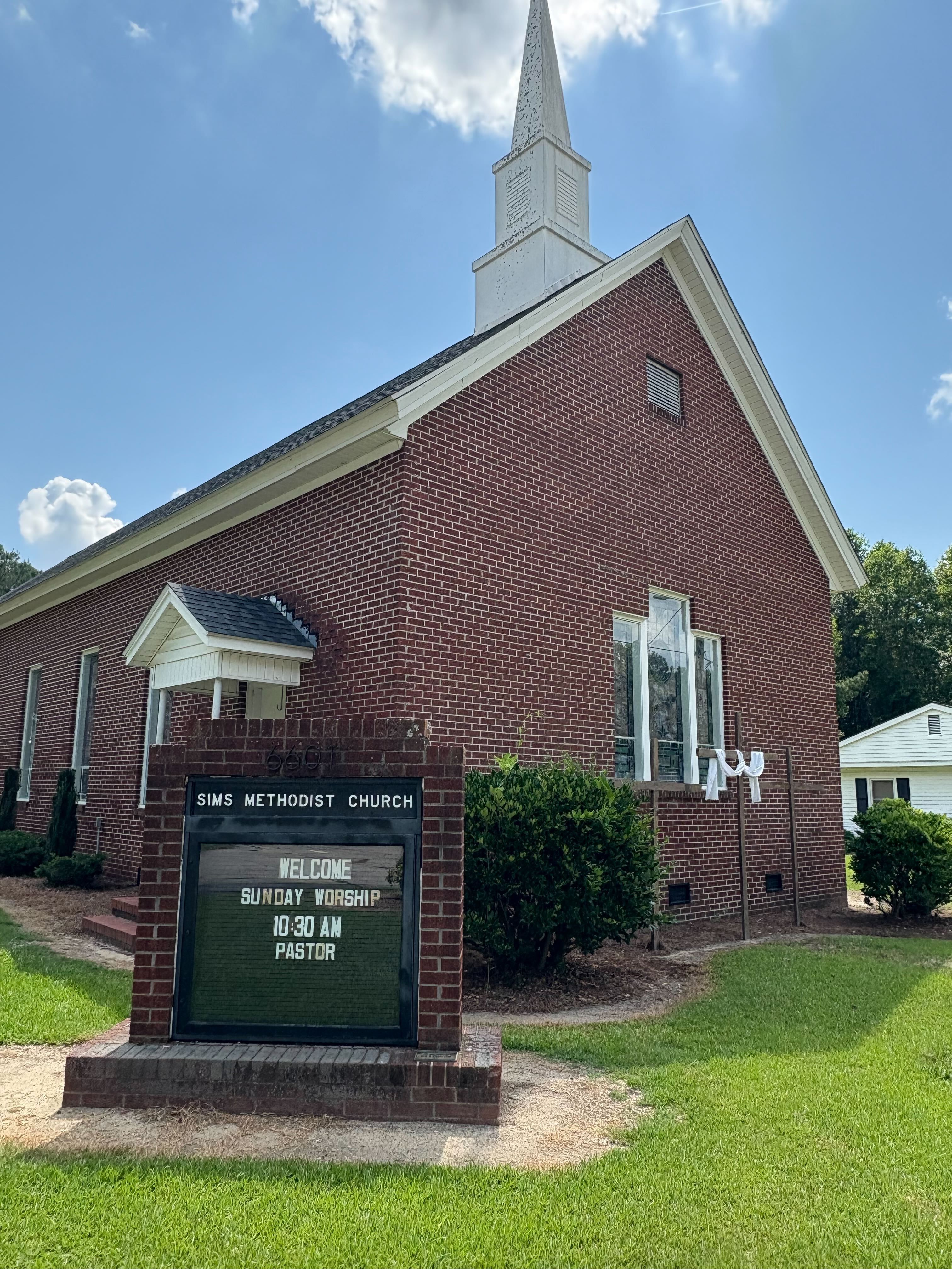 If you visit Sims (the town) and are looking for Sims Methodist Church, it is one block off Main Street. We are excited about this partnership because the congregation in Sims is warm and poised for growth. There are several hundred new homes in subdivisions (that used to be tobacco fields) within a mile of the church.